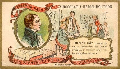 "Valentin Hauy consacre sa vie à l'éducation des jeunes aveugles et compose pour eux les caractères en relief"