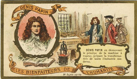 "DENIS PAPIN en découvrant le principe de la machine à vapeur, prépare la transformation de toute l'industrie moderne"