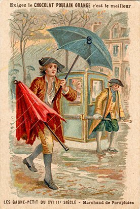 surprenant les promeneurs, le marchand en courant, appelait "Parapluie