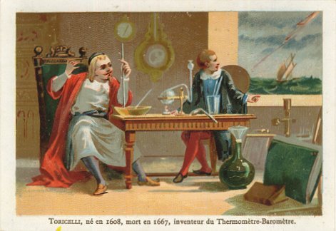 Toricelli, né en 1608, mort en 1647, inventeur du Thermomètre-Baromètre