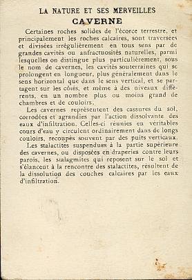 Les Chromos Pedagos La Nature et ses Merveilles (Série du Chocolat Poulain) Cavernes (Amérique Centrale)
