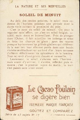 Les Chromos Pedagos La Nature et ses Merveilles (Série du Chocolat Poulain) Soleil de Minuit (Norvège)